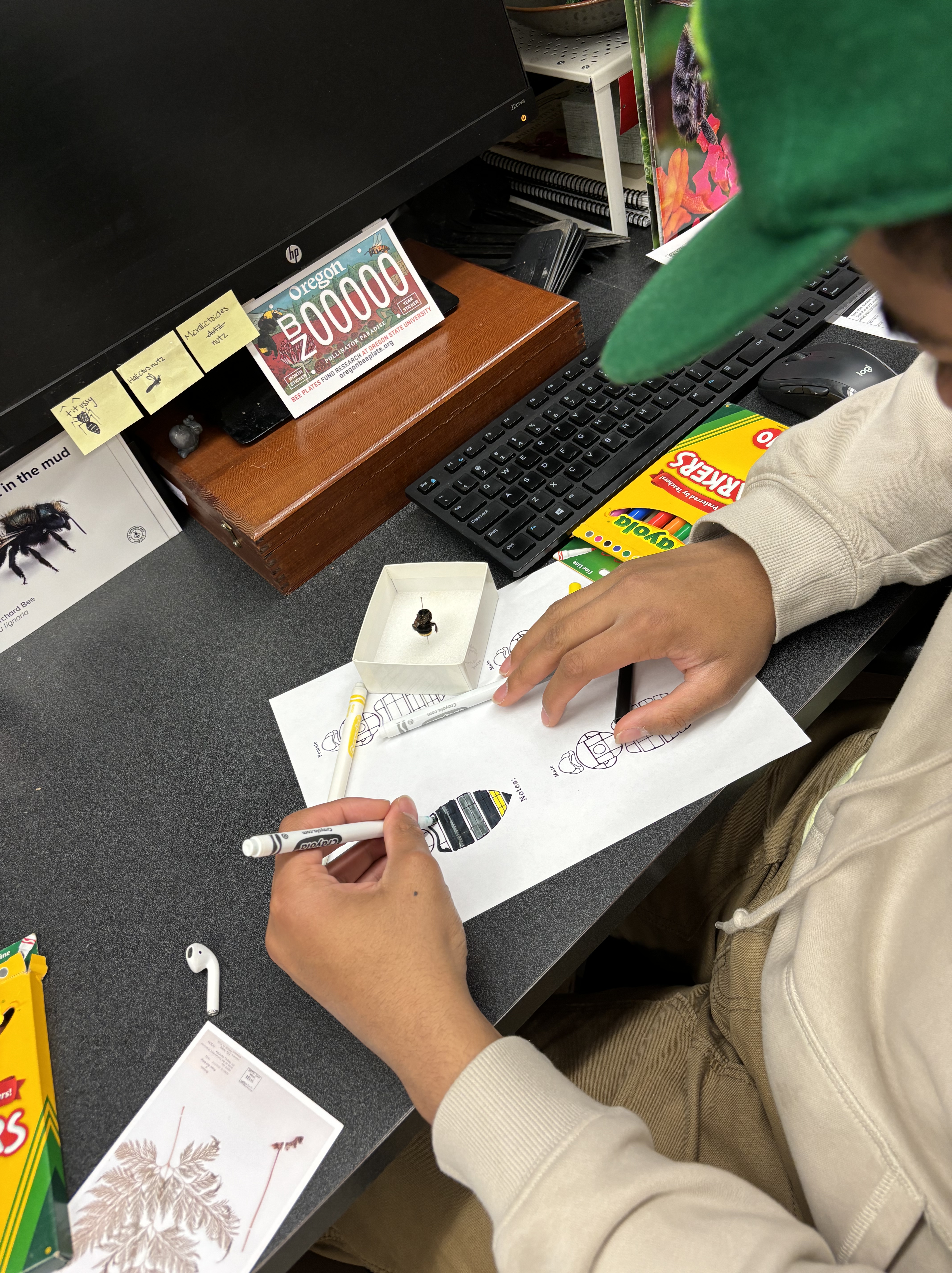 Ready to take a deep dive into the native bees of the Pacific Northwest? There are some incredible resources available for you! I want to shout out Oregon State University’s project, the Oregon Bee Atlas, as a cool example of citizen science contributing to a huge body of scientific knowledge. They use volunteers to gather data on iNaturalist (follow the link to see the list of PacNW bee species the Bee Atlas has collated) and then OSU’s scientists catalog and identify the bees found. I had the privilege of visiting them with a group of students a few years back and they were so enthusiastic and excited to share their program with us! The generosity of the OSU arthropod collection‘s curator was unmatched – we got to explore insects in their extensive collection from all over the world!