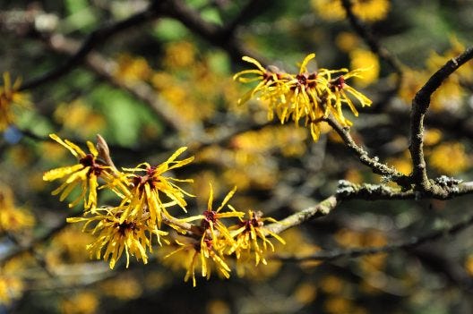 Witch hazel in the Jacob A Witt Winter Garden at UW Washington Park Arboretum. Photo by Univ of Washington Botanic Gardens