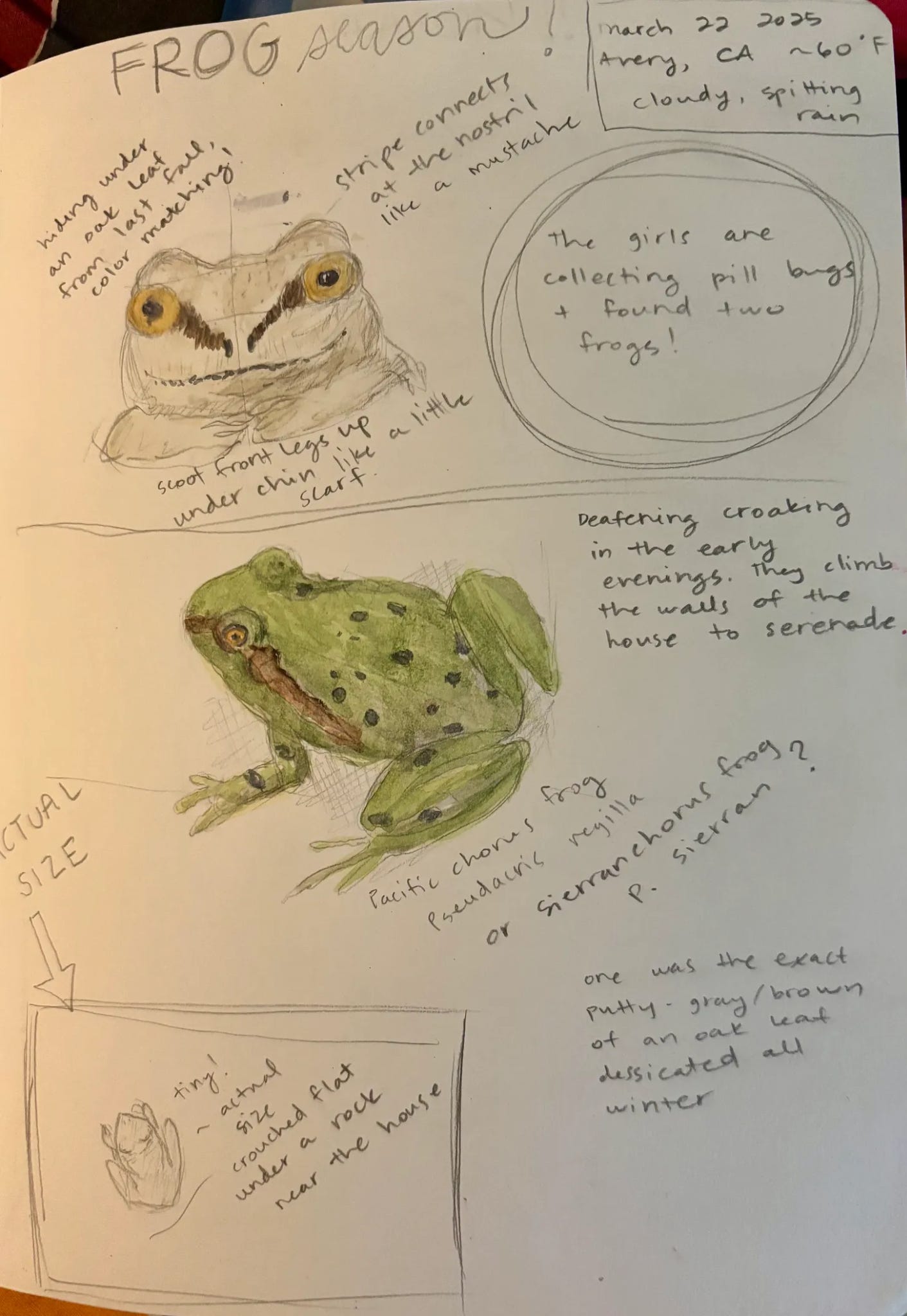 Part of my seasonal field notes series, this introduction to Pacific chorus frogs offers a glimpse into what’s happening outside right now.
